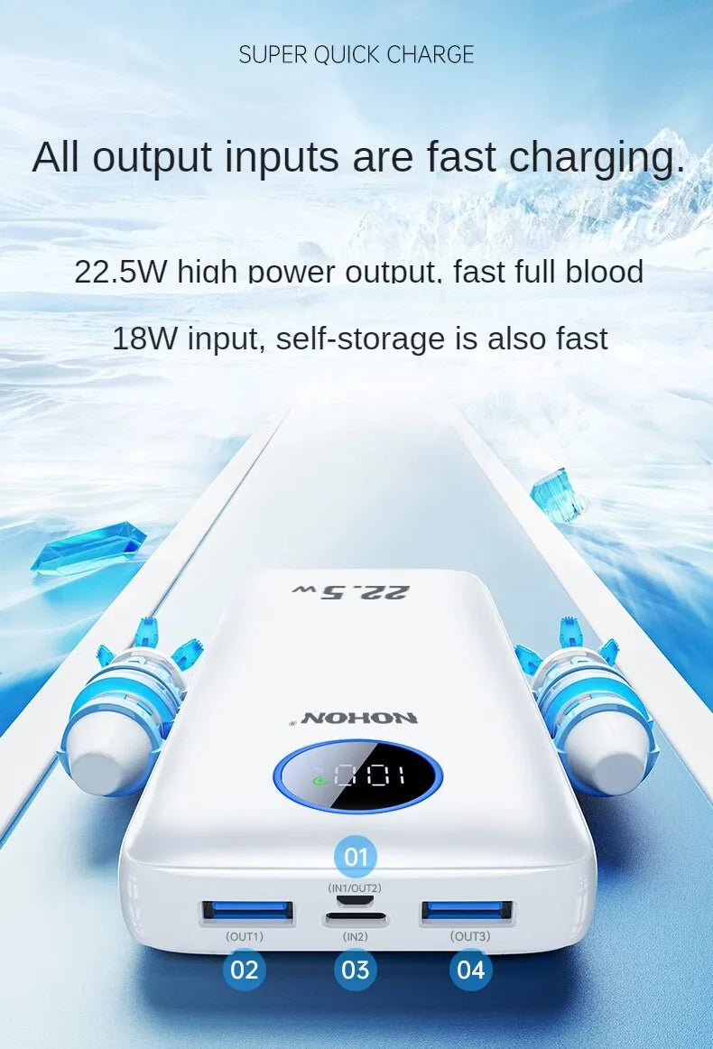 O Power Bank NOHON 10.000mAh é o companheiro ideal para quem não quer ficar sem bateria durante o dia.